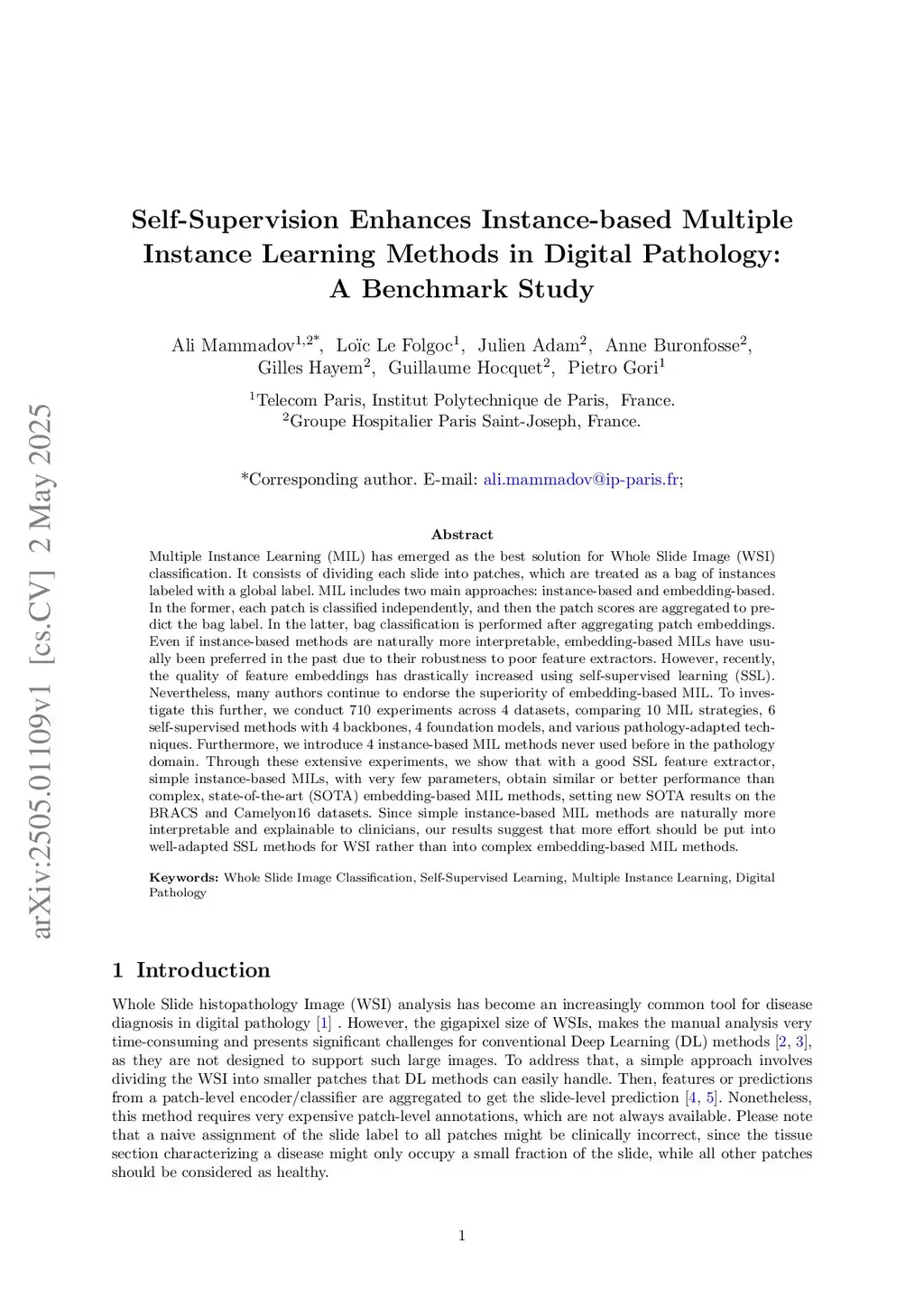 Self-Supervision Enhances Instance-based Multiple Instance Learning Methods in Digital Pathology: A Benchmark Study