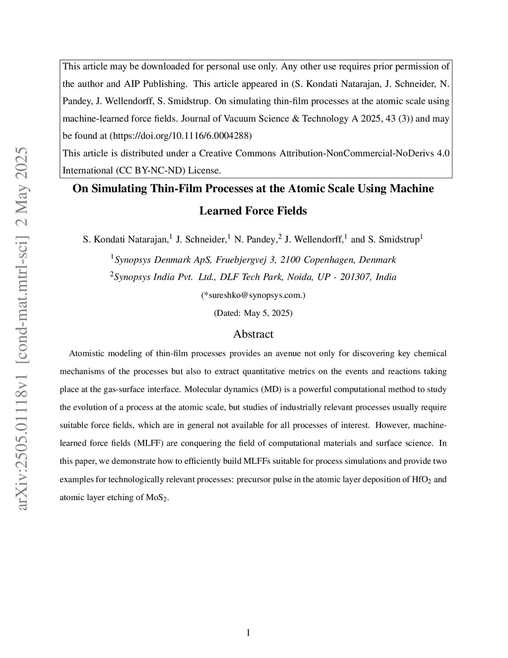 On Simulating Thin-Film Processes at the Atomic Scale Using Machine Learned Force Fields