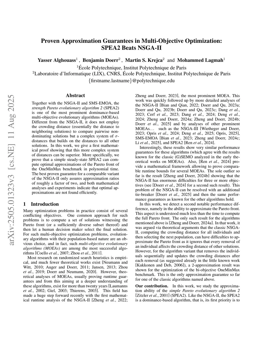 Proven Approximation Guarantees in Multi-Objective Optimization: SPEA2 Beats NSGA-II