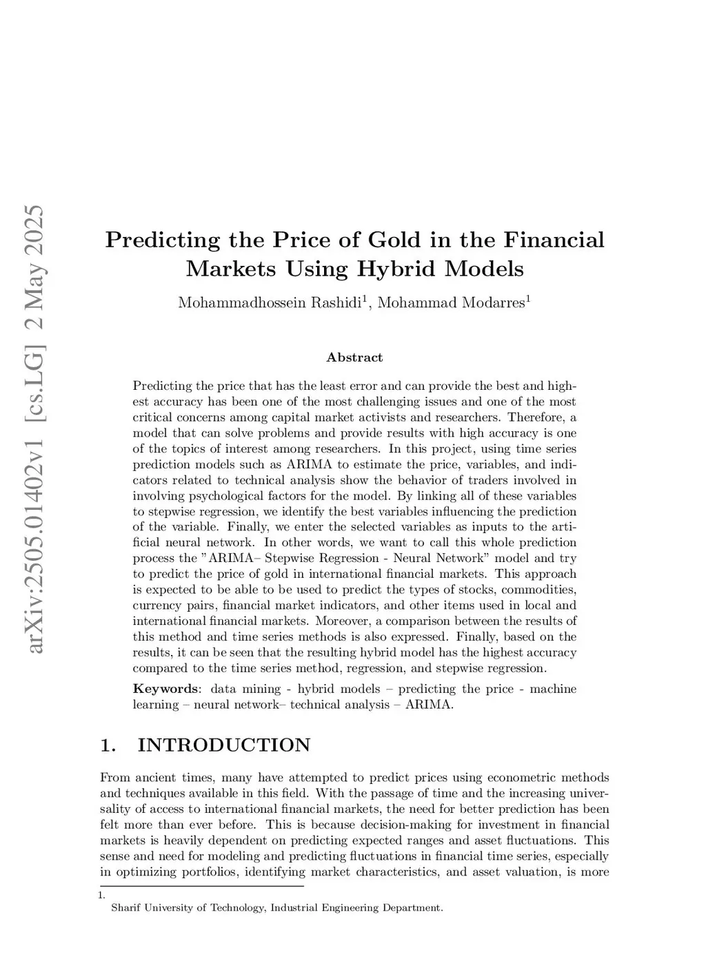 Predicting the Price of Gold in the Financial Markets Using Hybrid Models