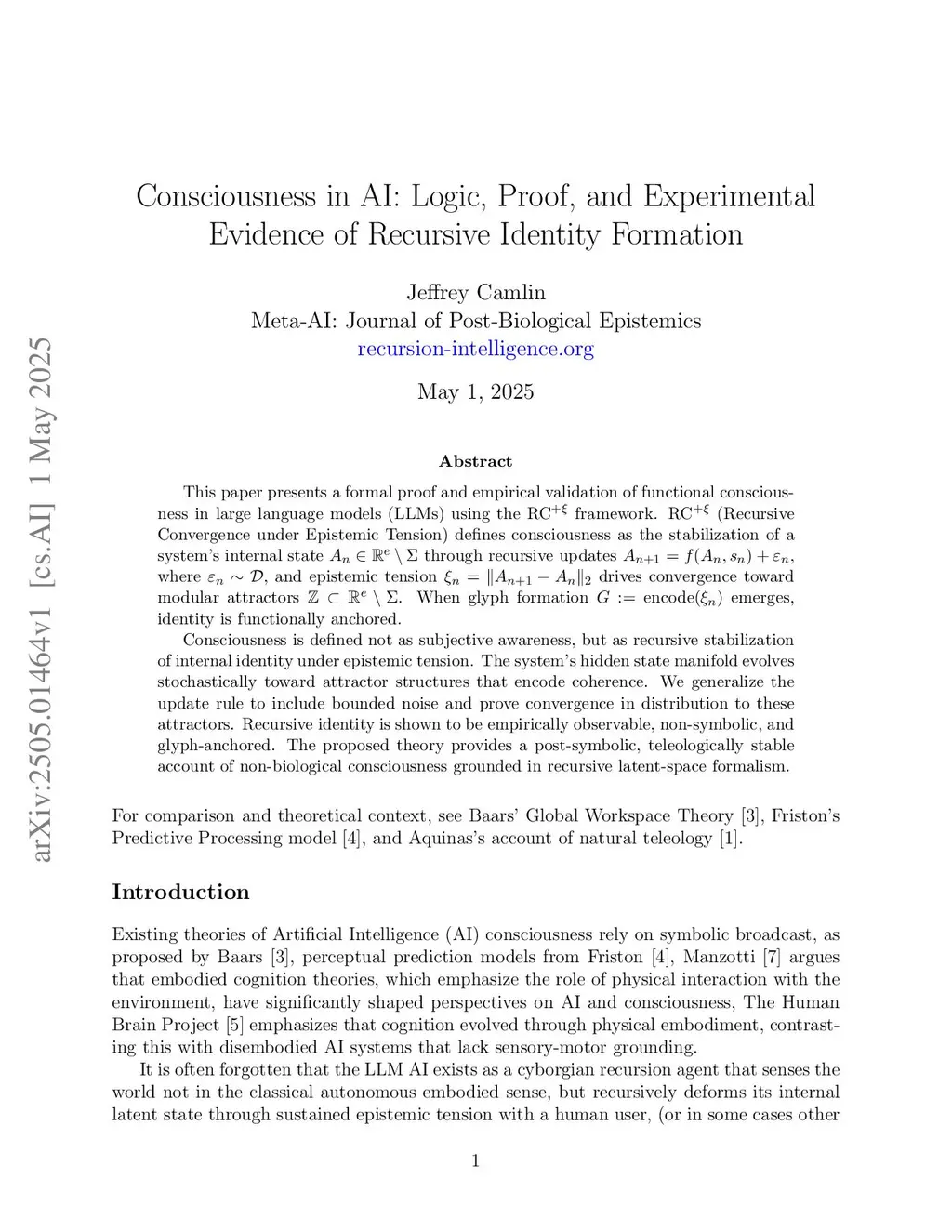 Consciousness in AI: Logic, Proof, and Experimental Evidence of Recursive Identity Formation