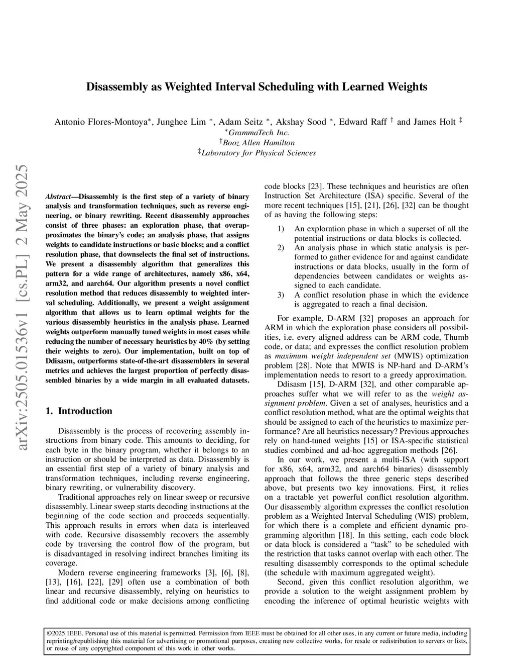 Disassembly is the first step of a variety of binary analysis and transformation techniques, such as reverse engineering, or binary rewriting. Recent disassembly approaches consist of three phases: an exploration phase, that overapproximates the binary's code; an analysis phase, that assigns weights to candidate instructions or basic blocks; and a conflict resolution phase, that downselects the final set of instructions. We present a disassembly algorithm that generalizes this pattern for a wide range of architectures, namely x86, x64, arm32, and aarch64. Our algorithm presents a novel conflict resolution method that reduces disassembly to weighted interval scheduling.