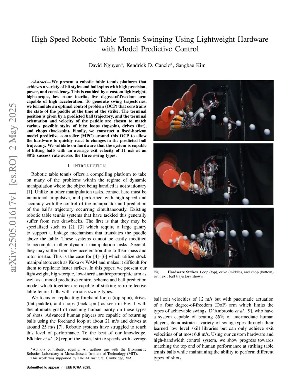 High Speed Robotic Table Tennis Swinging Using Lightweight Hardware with Model Predictive Control