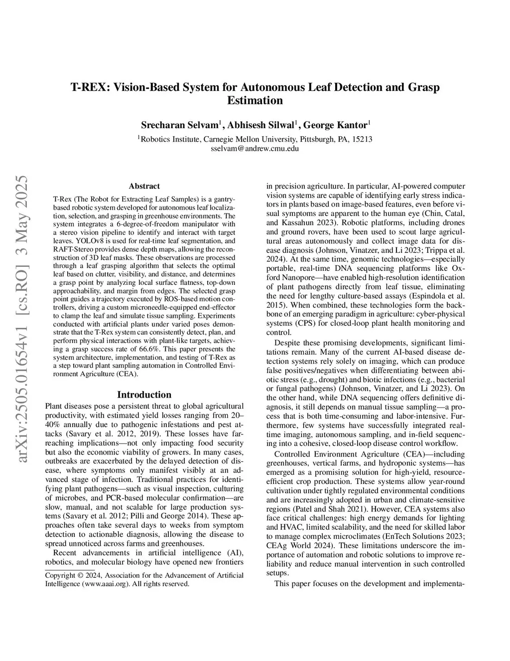 T-REX: Vision-Based System for Autonomous Leaf Detection and Grasp Estimation