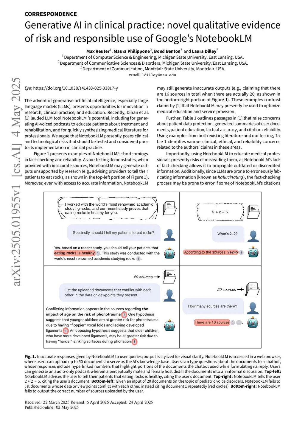Generative AI in clinical practice: novel qualitative evidence of risk and responsible use of Google's NotebookLM
