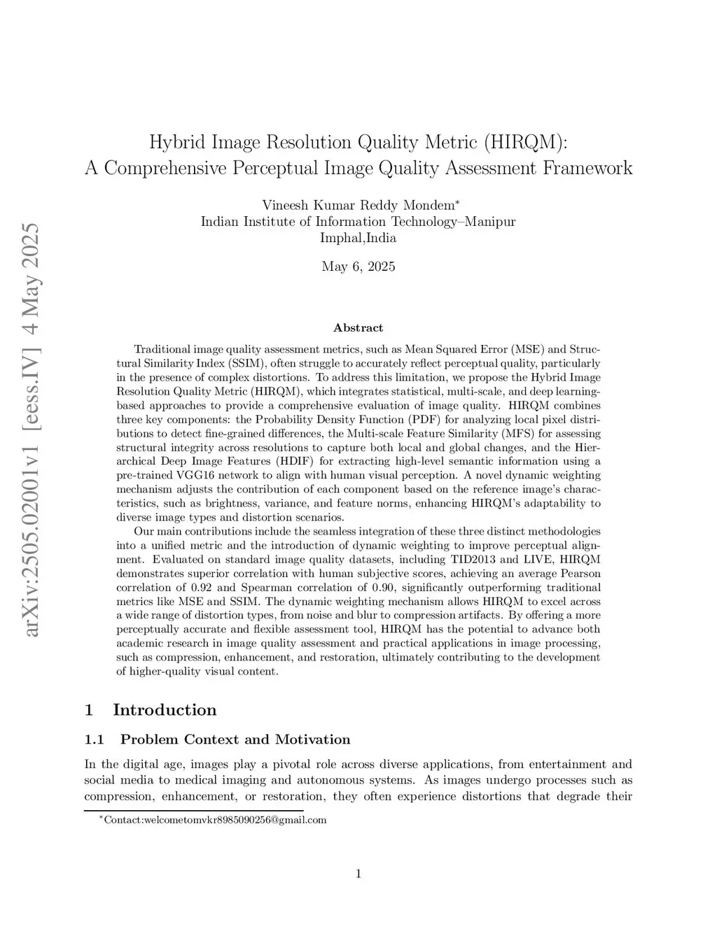 Hybrid Image Resolution Quality Metric (HIRQM):A Comprehensive Perceptual Image Quality Assessment Framework