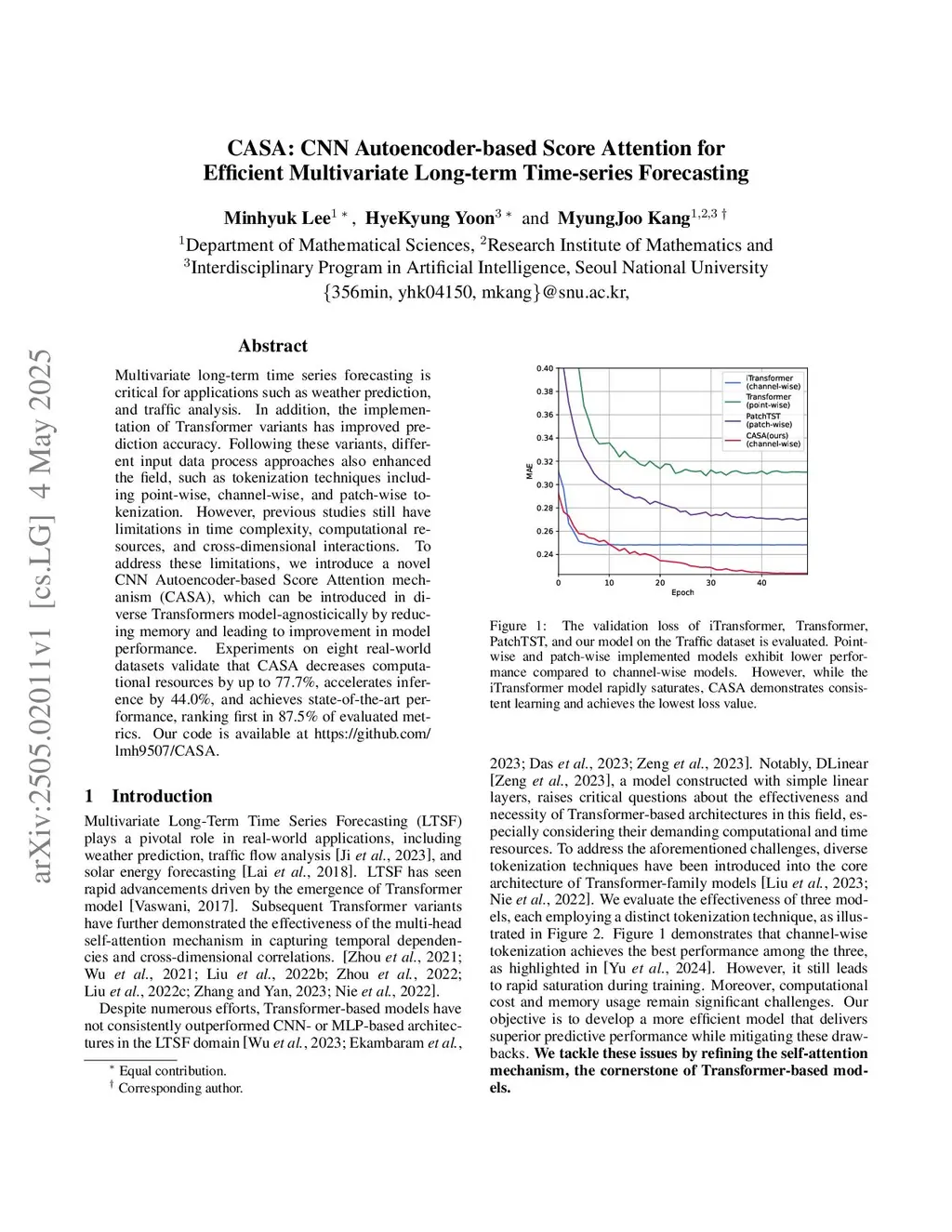CASA: CNN Autoencoder-based Score Attention for Efficient Multivariate Long-term Time-series Forecasting
