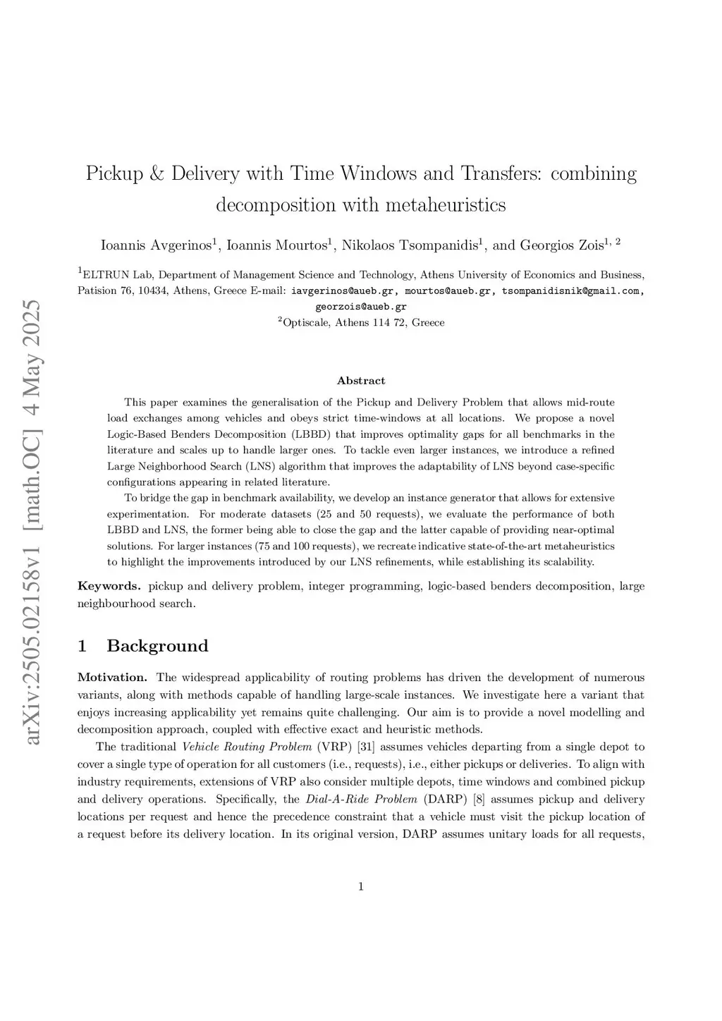 Pickup & Delivery with Time Windows and Transfers: combining decomposition with metaheuristics
