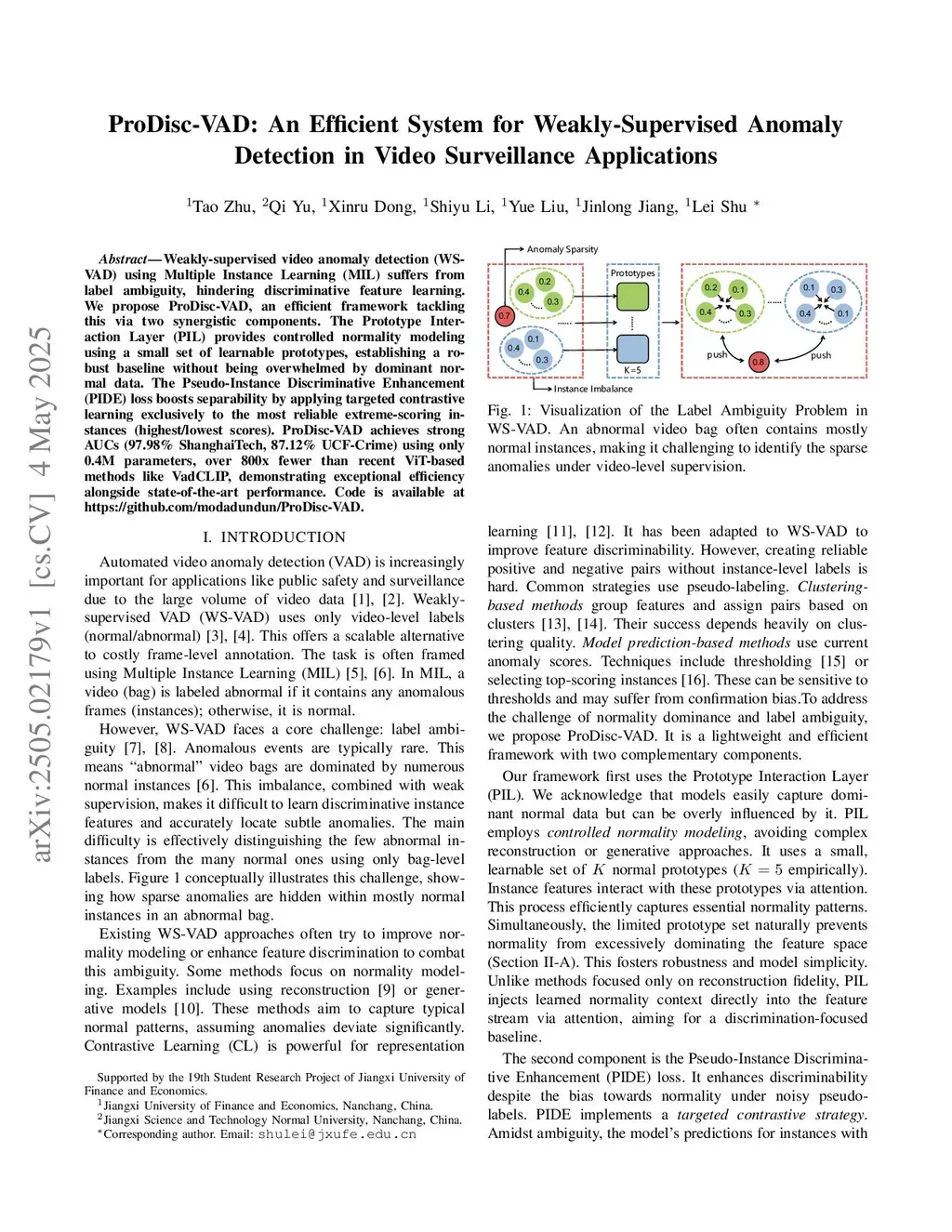 ProDisc-VAD: An Efficient System for Weakly-Supervised Anomaly Detection in Video Surveillance Applications