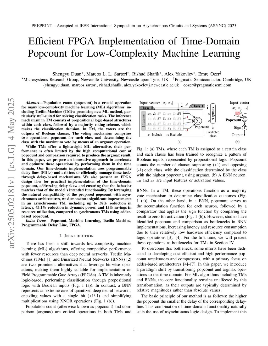 Efficient FPGA Implementation of Time-Domain Popcount for Low-Complexity Machine Learning