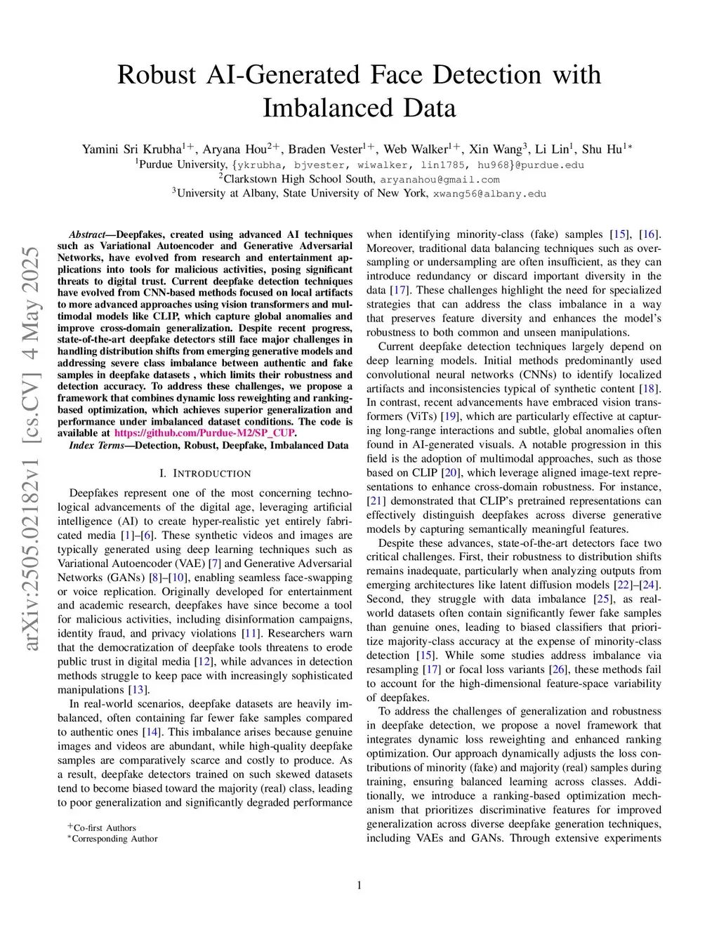 Deepfakes, created using advanced AI techniques such as Variational Autoencoder and Generative Adversarial Networks, have evolved from research and entertainment applications into tools for malicious activities, posing significant threats to digital trust. Current deepfake detection techniques have evolved from CNN-based methods focused on local artifacts to more advanced approaches using vision transformers and multimodal models like CLIP, which capture global anomalies and improve cross-domain generalization. Despite recent progress, state-of-the-art deepfake detectors still face major challenges in handling distribution shifts from emerging generative models and addressing severe class imbalance between authentic and fake samples in deepfake datasets, which limits their robustness and detection accuracy. To address these challenges, we propose a framework that combines dynamic loss reweighting and ranking-based optimization, which achieves superior generalization and performance under imbalanced dataset conditions. The code is available atthis https URL.