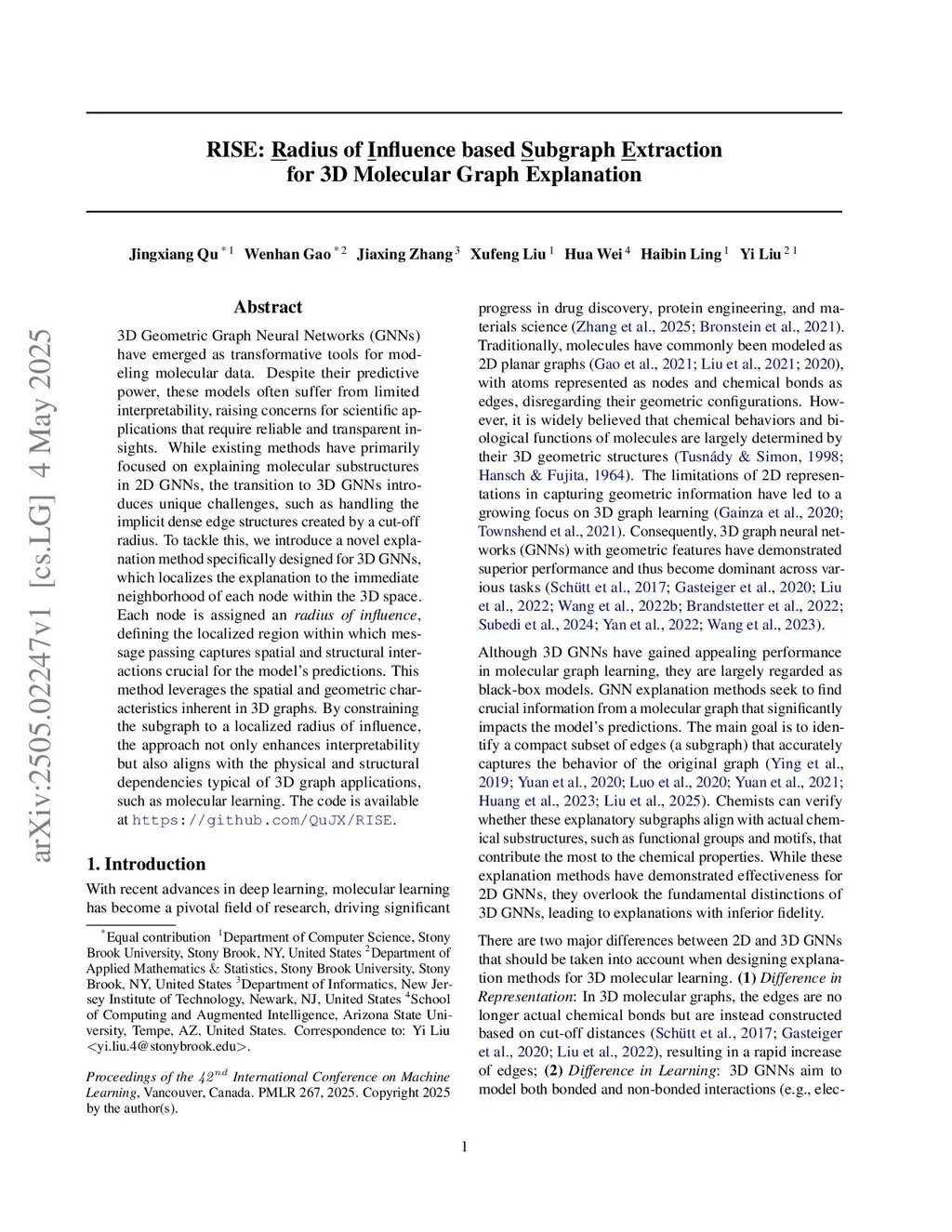 RISE: Radius of Influence based Subgraph Extraction for 3D Molecular Graph Explanation