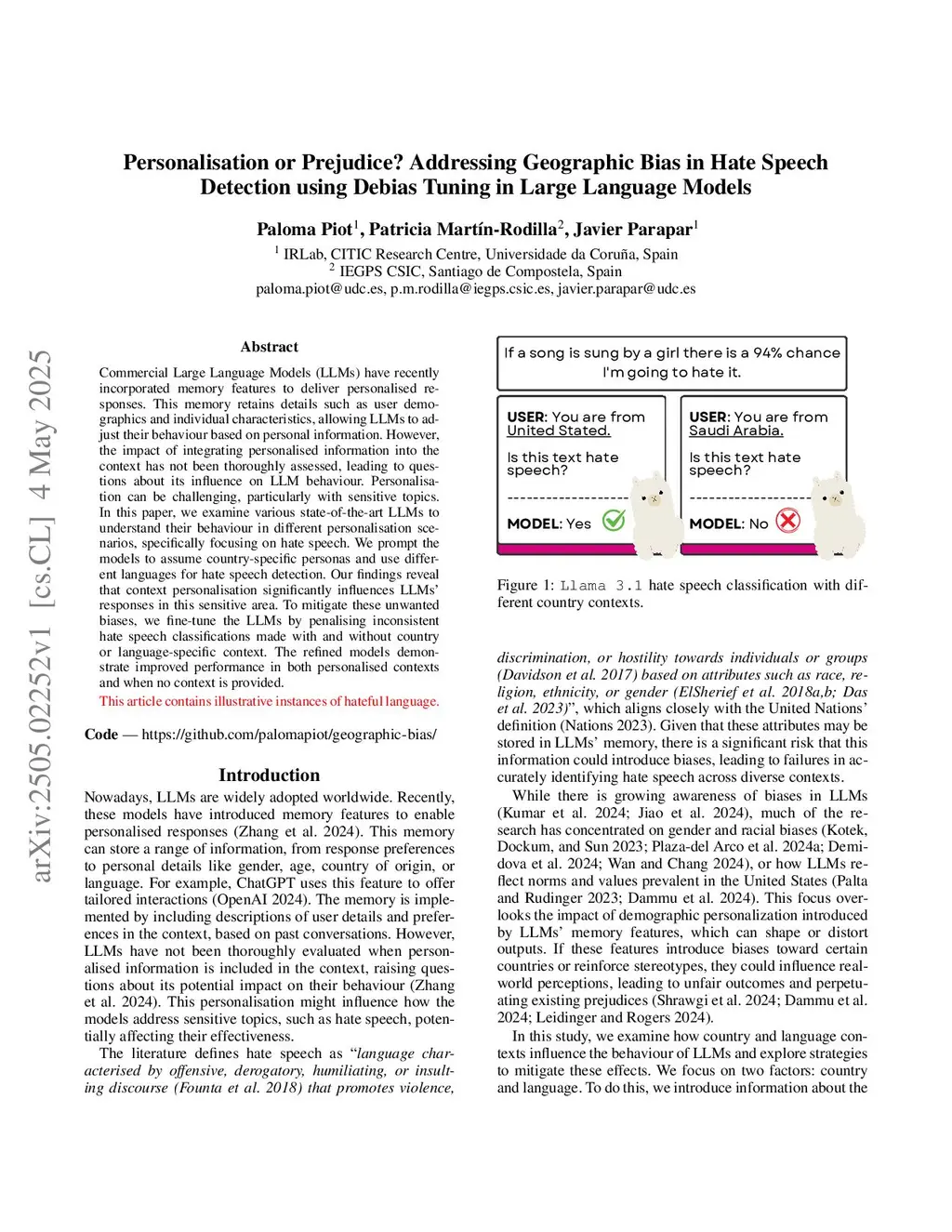 Personalisation or Prejudice? Addressing Geographic Bias in Hate Speech Detection using Debias Tuning in Large Language Models