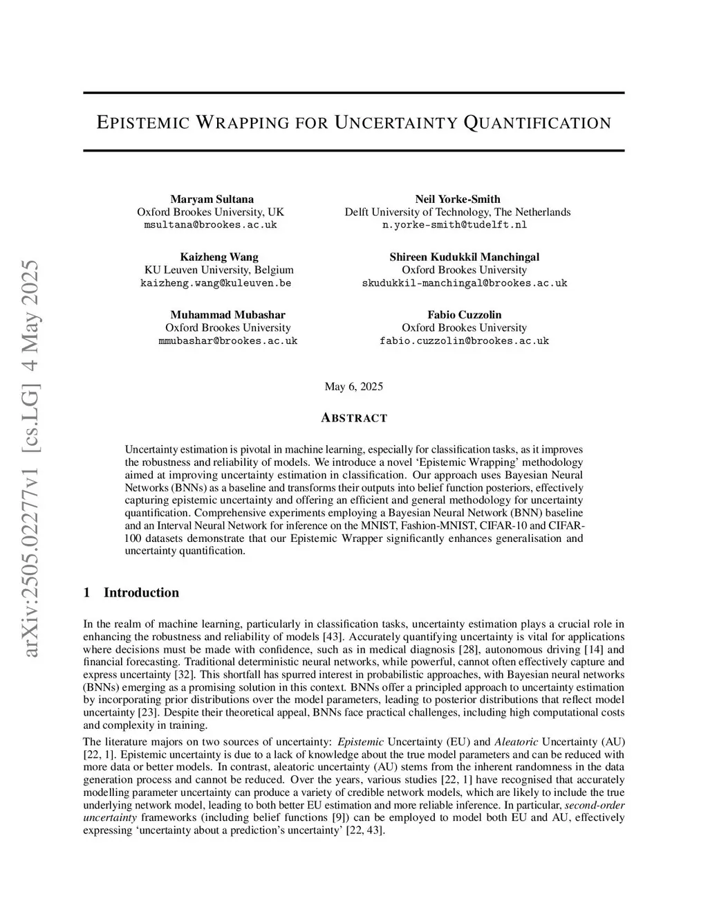 Uncertainty estimation is pivotal in machine learning, especially for classification tasks, as it improves the robustness and reliability of models. We introduce a novel `Epistemic Wrapping' methodology aimed at improving uncertainty estimation in classification. Our approach uses Bayesian Neural Networks (BNNs) as a baseline and transforms their outputs into belief function posteriors, effectively capturing epistemic uncertainty and offering an efficient and general methodology for uncertainty quantification. Comprehensive experiments employing a Bayesian Neural Network (BNN) baseline and an Interval Neural Network for inference on the MNIST, Fashion-MNIST, CIFAR-10 and CIFAR-100 datasets demonstrate that our Epistemic Wrapper significantly enhances generalisation and uncertainty quantification.