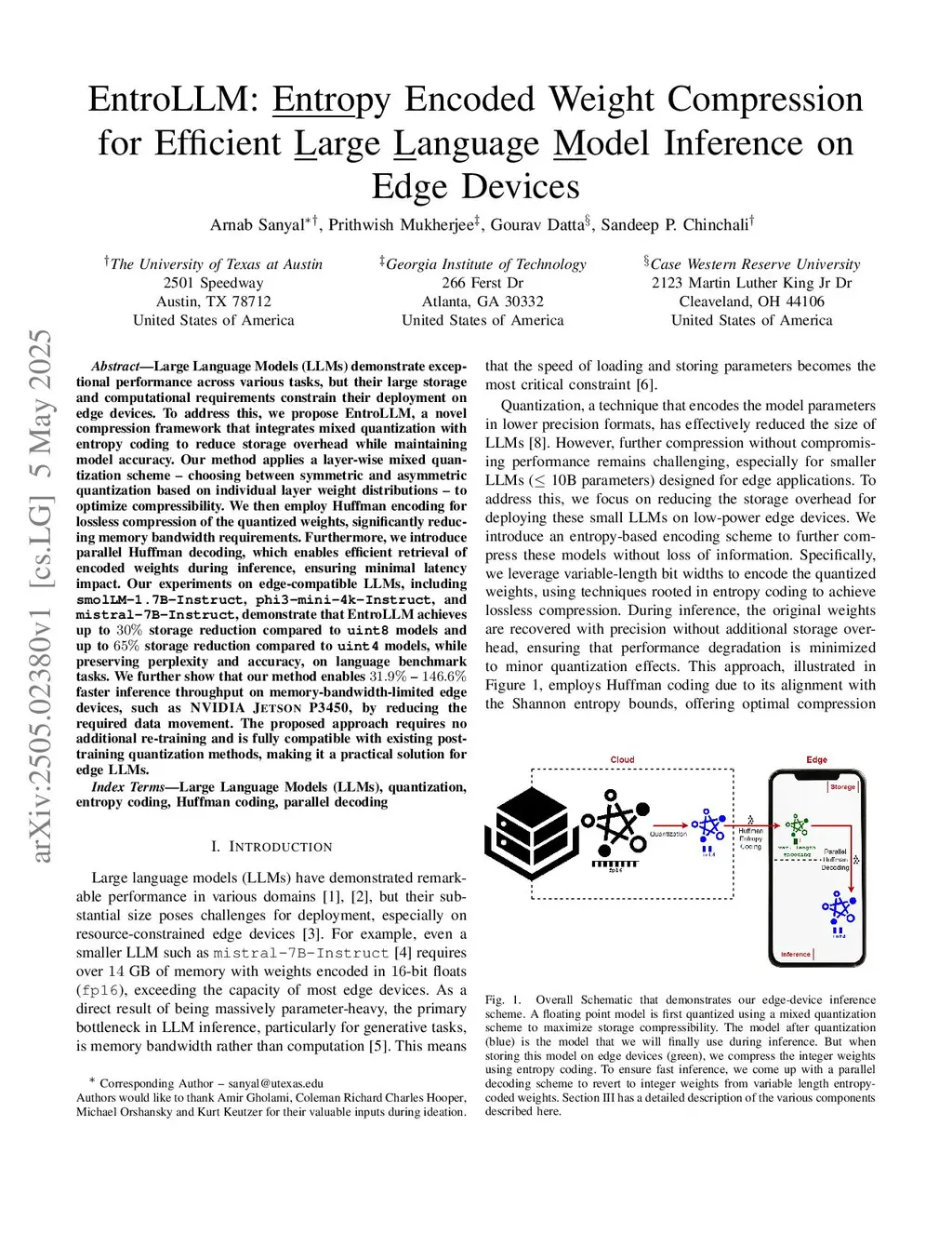 EntroLLM: Entropy Encoded Weight Compression for Efficient Large Language Model Inference on Edge Devices