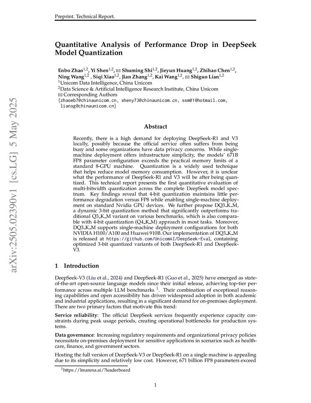 Quantitative Analysis of Performance Drop in DeepSeek Model Quantization