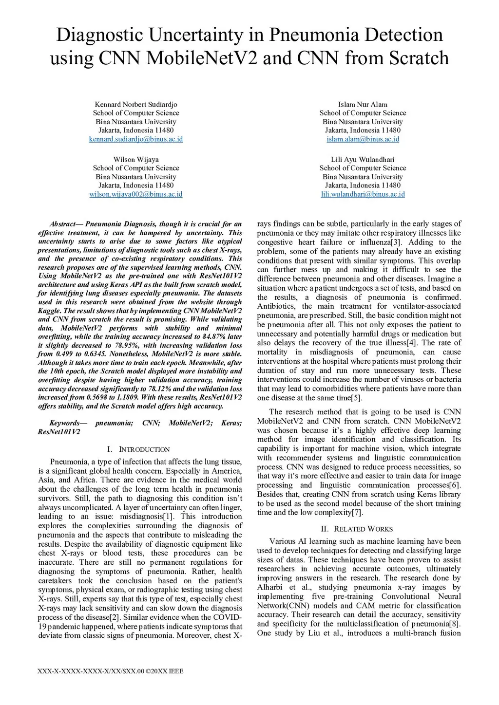 Diagnostic Uncertainty in Pneumonia Detection using CNN MobileNetV2 and CNN from Scratch