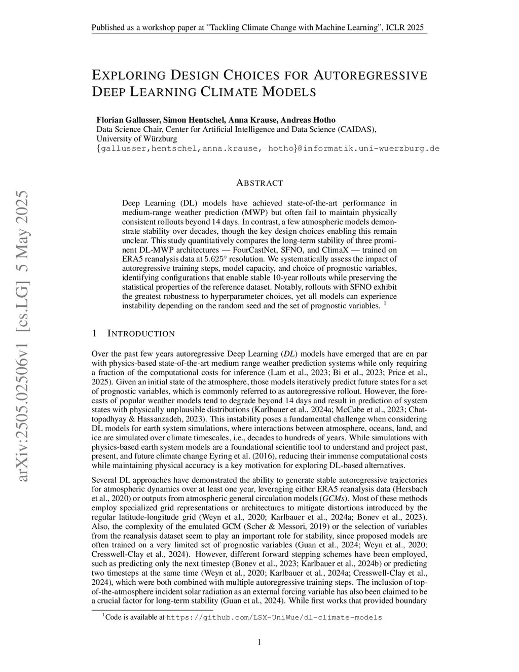Exploring Design Choices for Autoregressive Deep Learning Climate Models