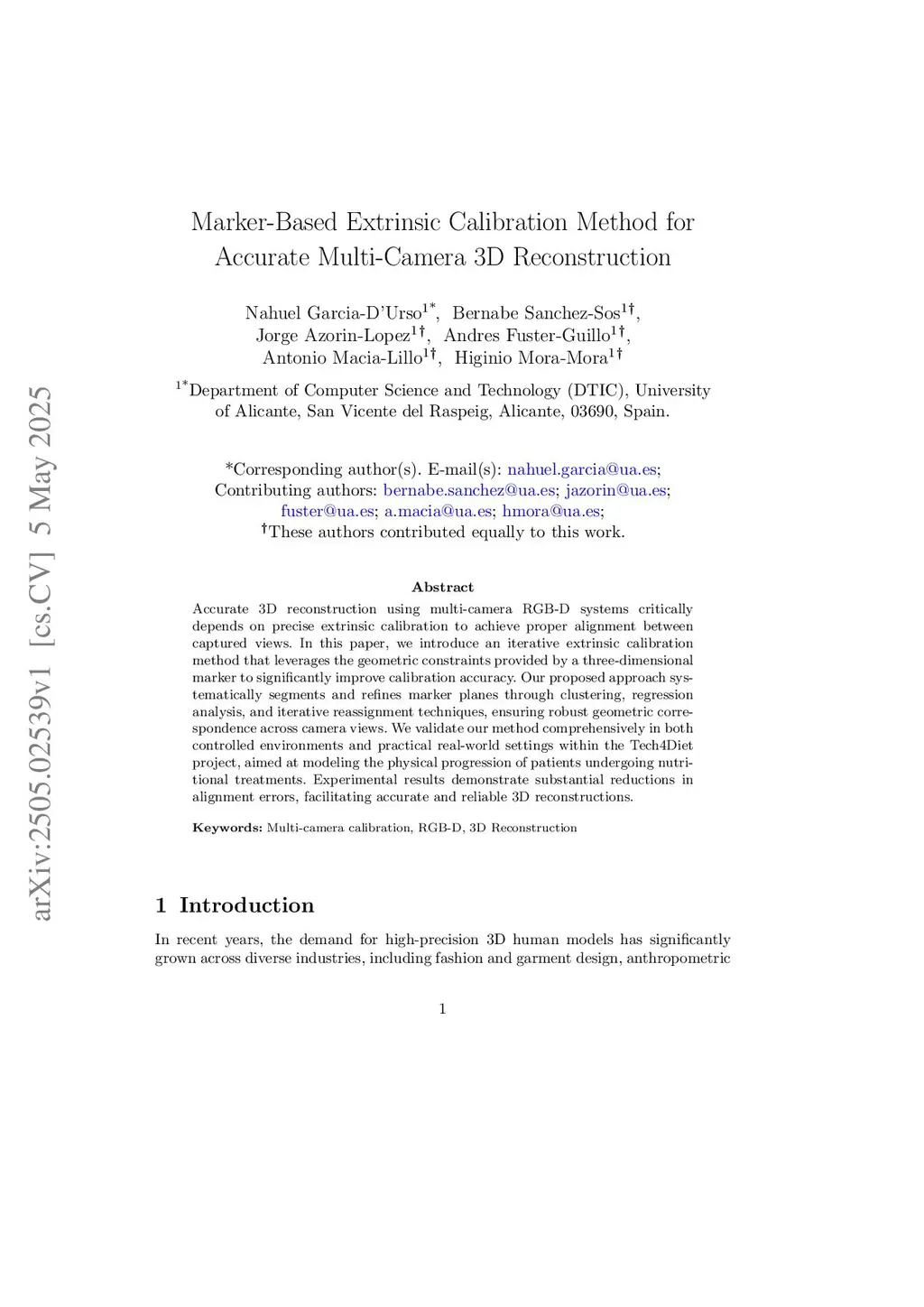 Marker-Based Extrinsic Calibration Method for Accurate Multi-Camera 3D Reconstruction