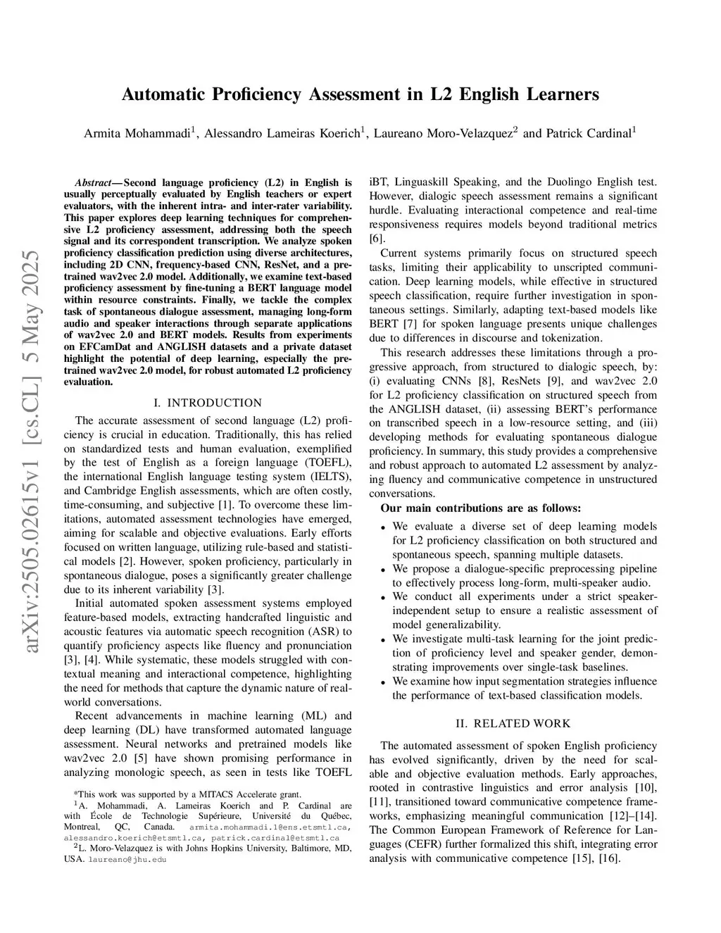 Automatic Proficiency Assessment in L2 English Learners