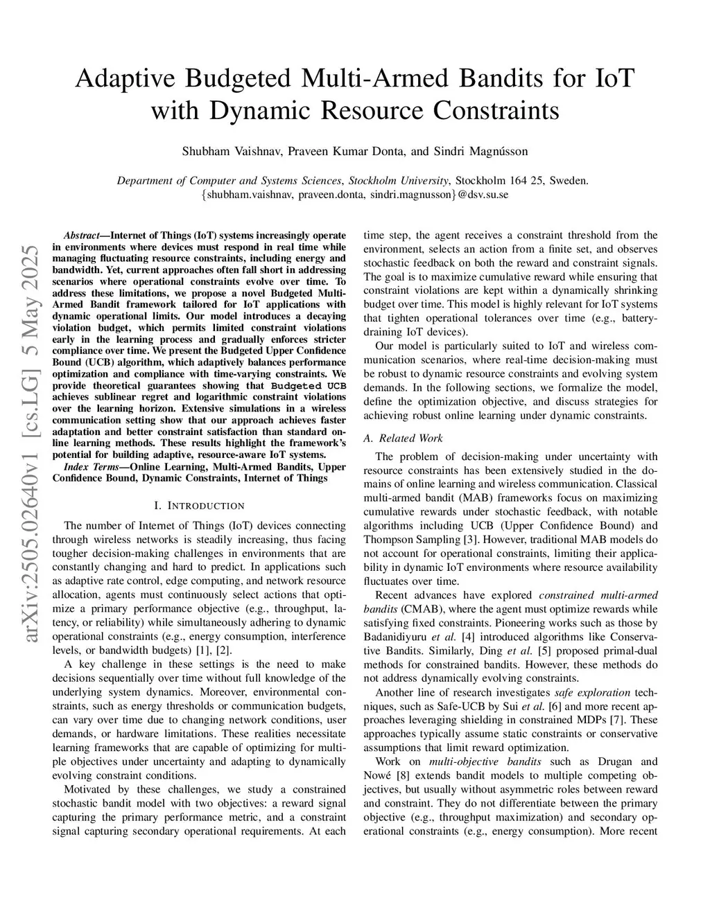 Internet of Things (IoT) systems increasingly operate in environments where devices must respond in real time while managing fluctuating resource constraints, including energy and bandwidth. Yet, current approaches often fall short in addressing scenarios where operational constraints evolve over time. To address these limitations, we propose a novel Budgeted Multi-Armed Bandit framework tailored for IoT applications with dynamic operational limits. Our model introduces a decaying violation budget, which permits limited constraint violations early in the learning process and gradually enforces stricter compliance over time. We present the Budgeted Upper Confidence Bound (UCB) algorithm, which adaptively balances performance optimization and compliance with time-varying constraints. We provide theoretical guarantees showing that Budgeted UCB achieves sublinear regret and logarithmic constraint violations over the learning horizon. Extensive simulations in a wireless communication setting show that our approach achieves faster adaptation and better constraint satisfaction than standard online learning methods. These results highlight the framework's potential for building adaptive, resource-aware IoT systems.