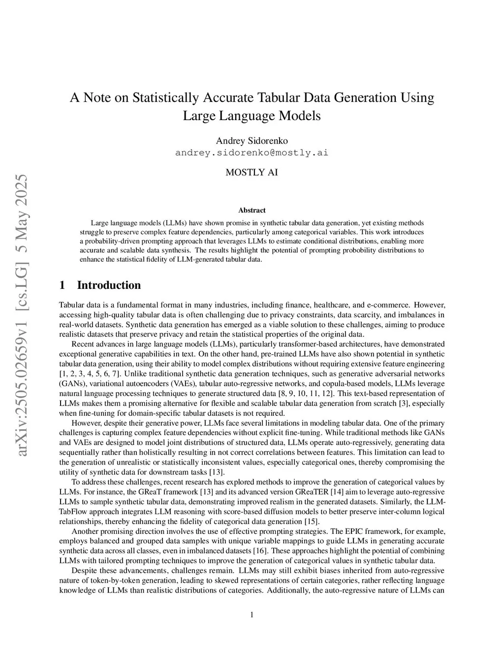 A Note on Statistically Accurate Tabular Data Generation Using Large Language Models