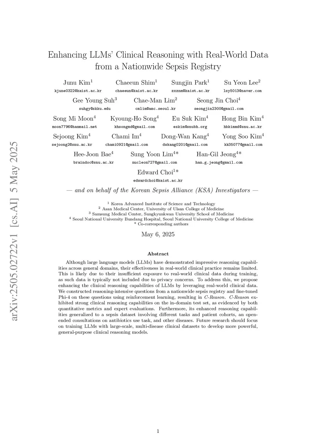 Enhancing LLMs' Clinical Reasoning with Real-World Data from a Nationwide Sepsis Registry
