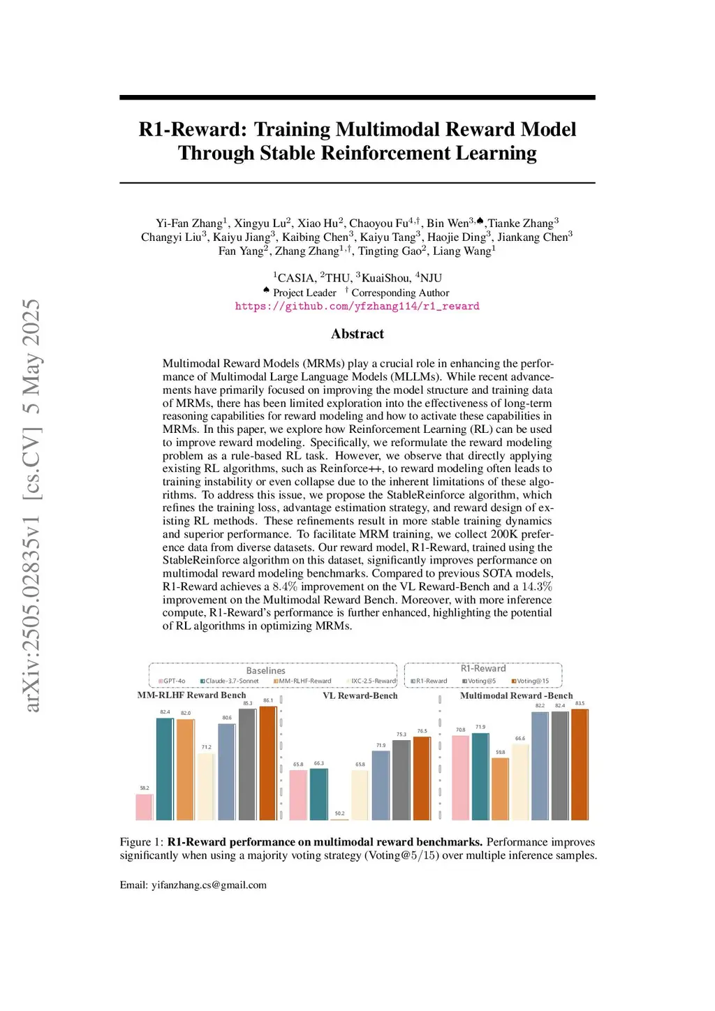 R1-Reward: Training Multimodal Reward Model Through Stable Reinforcement Learning