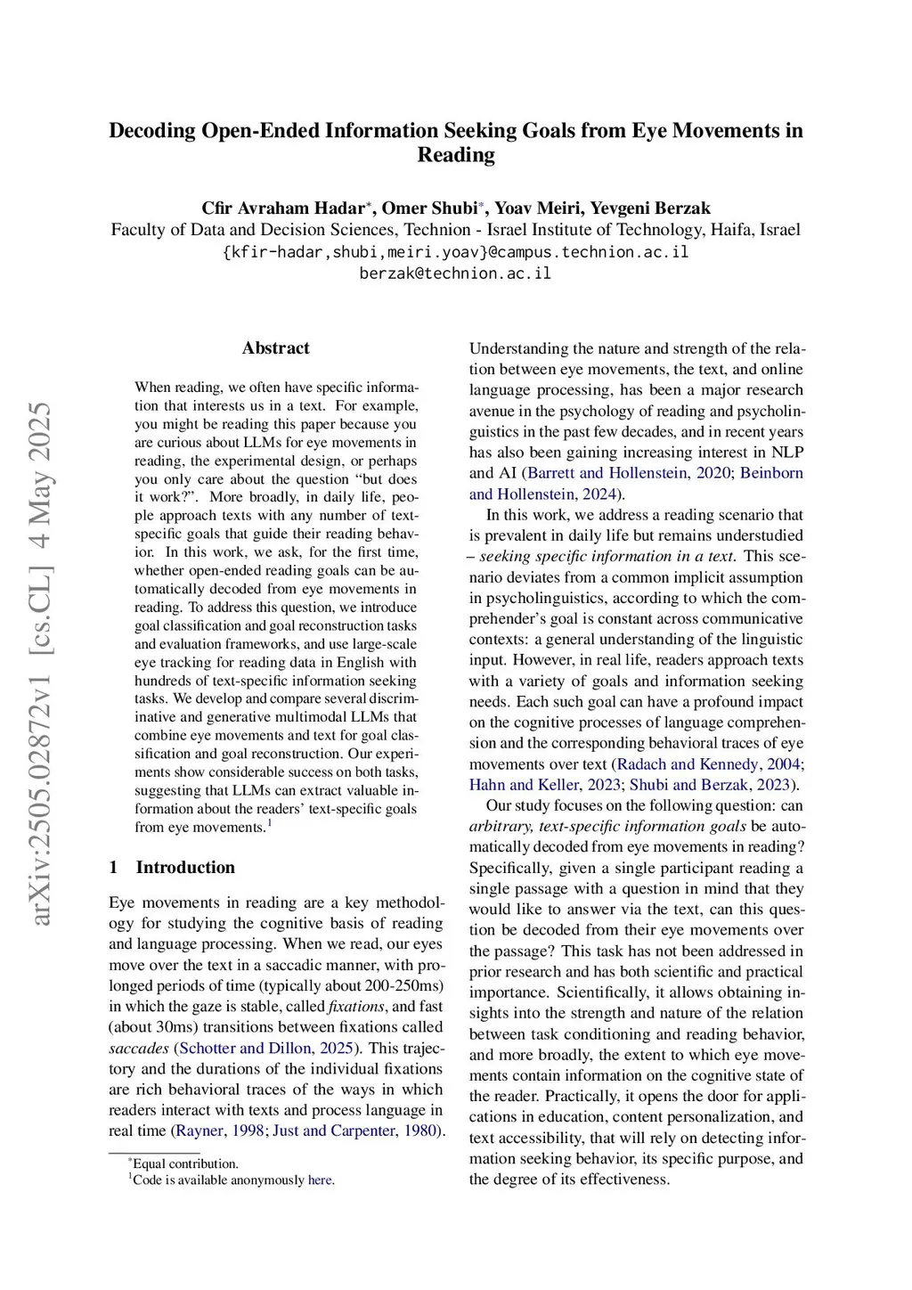 Decoding Open-Ended Information Seeking Goals from Eye Movements in Reading