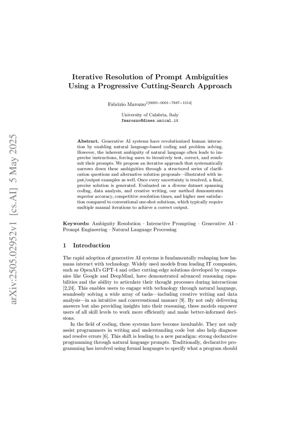 Iterative Resolution of Prompt Ambiguities Using a Progressive Cutting-Search Approach