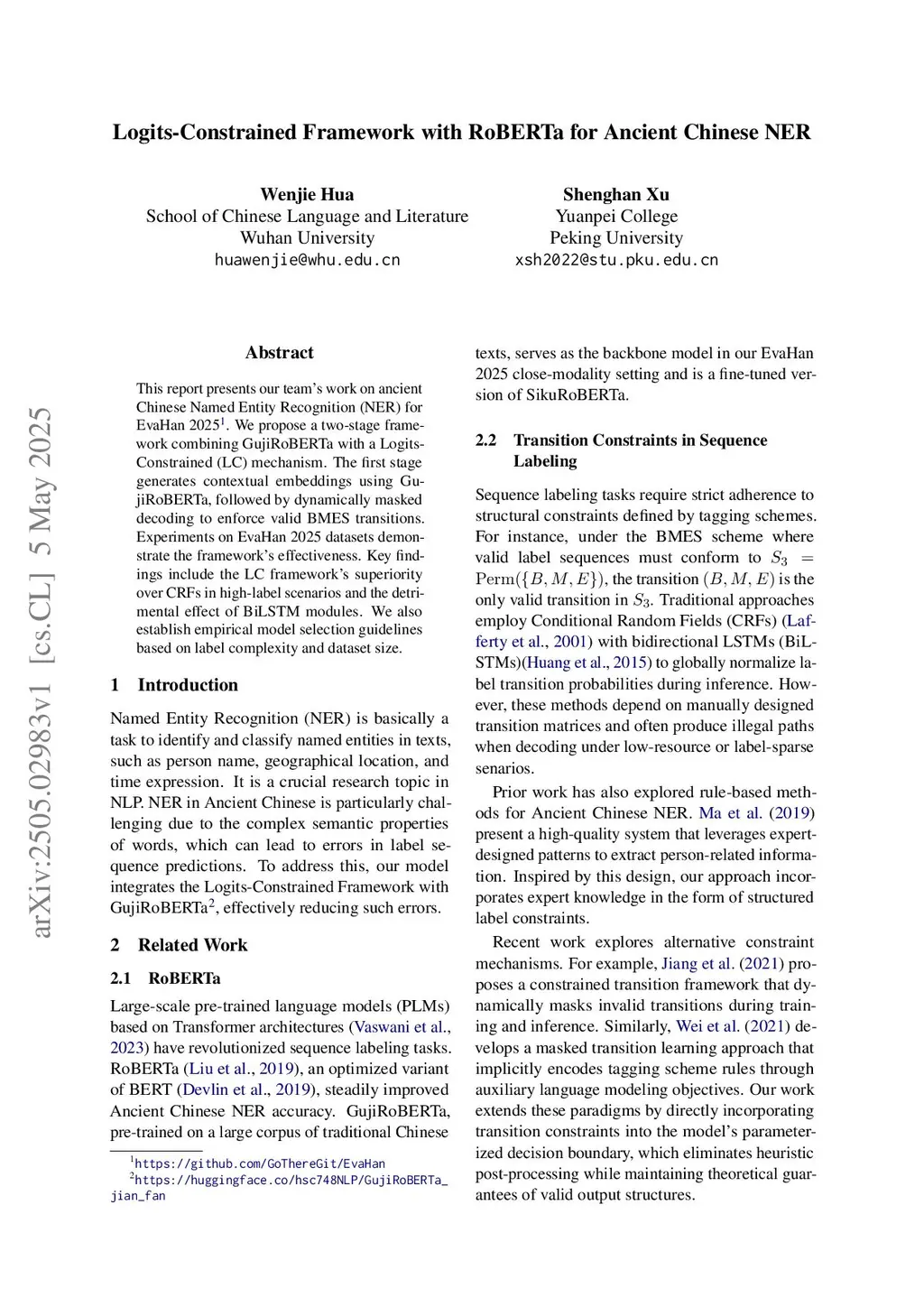 This paper presents a Logits-Constrained (LC) framework for Ancient Chinese Named Entity Recognition (NER), evaluated on the EvaHan 2025 benchmark. Our two-stage model integrates GujiRoBERTa for contextual encoding and a differentiable decoding mechanism to enforce valid BMES label transitions. Experiments demonstrate that LC improves performance over traditional CRF and BiLSTM-based approaches, especially in high-label or large-data settings. We also propose a model selection criterion balancing label complexity and dataset size, providing practical guidance for real-world Ancient Chinese NLP tasks.