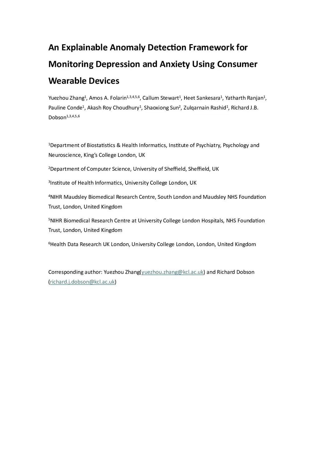 An Explainable Anomaly Detection Framework for Monitoring Depression and Anxiety Using Consumer Wearable Devices