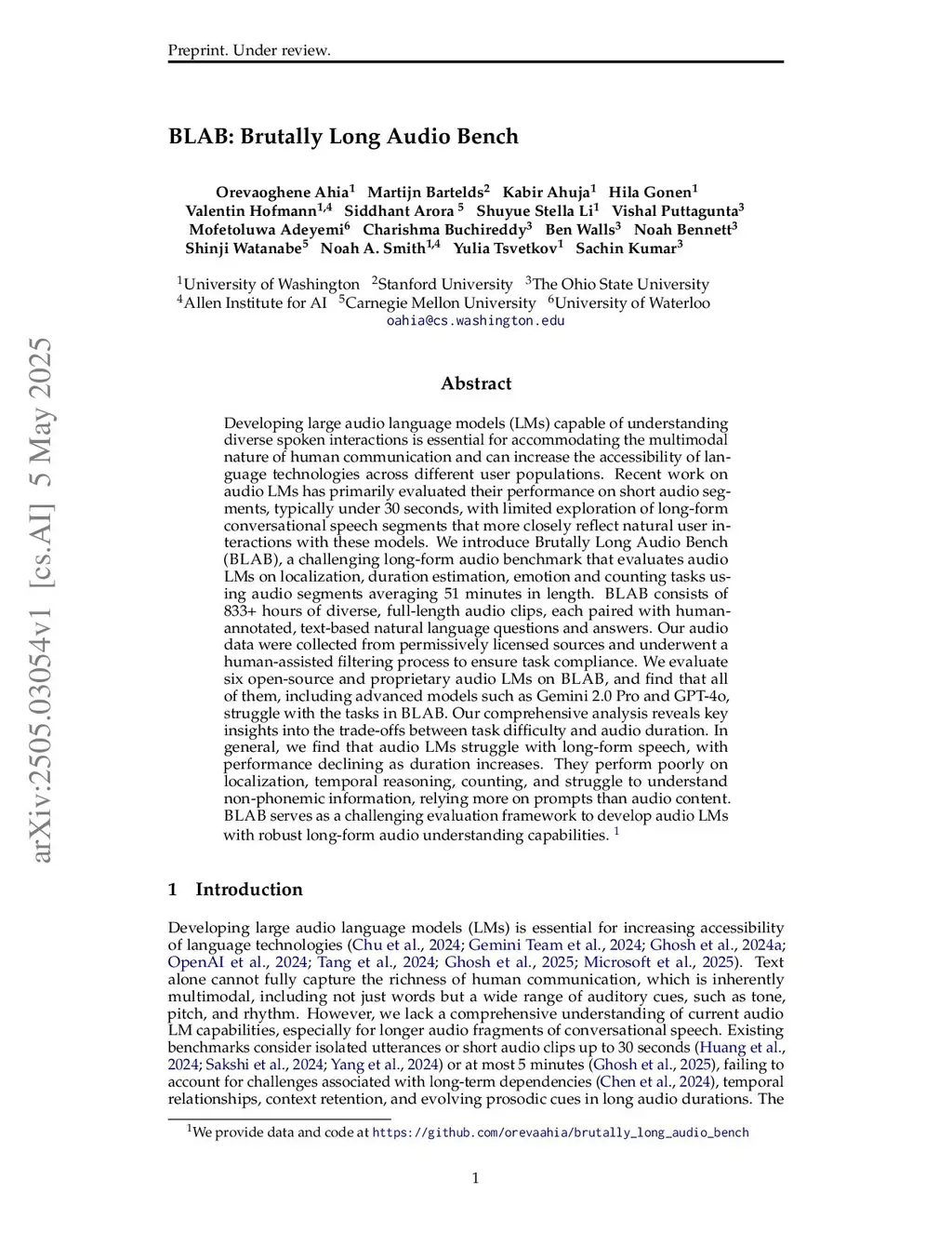 Developing large audio language models (LMs) capable of understanding diverse spoken interactions is essential for accommodating the multimodal nature of human communication and can increase the accessibility of language technologies across different user populations. Recent work on audio LMs has primarily evaluated their performance on short audio segments, typically under 30 seconds, with limited exploration of long-form conversational speech segments that more closely reflect natural user interactions with these models. We introduce Brutally Long Audio Bench (BLAB), a challenging long-form audio benchmark that evaluates audio LMs on localization, duration estimation, emotion, and counting tasks using audio segments averaging 51 minutes in length. BLAB consists of 833+ hours of diverse, full-length audio clips, each paired with human-annotated, text-based natural language questions and answers. Our audio data were collected from permissively licensed sources and underwent a human-assisted filtering process to ensure task compliance. We evaluate six open-source and proprietary audio LMs on BLAB and find that all of them, including advanced models such as Gemini 2.0 Pro and GPT-4o, struggle with the tasks in BLAB. Our comprehensive analysis reveals key insights into the trade-offs between task difficulty and audio duration. In general, we find that audio LMs struggle with long-form speech, with performance declining as duration increases. They perform poorly on localization, temporal reasoning, counting, and struggle to understand non-phonemic information, relying more on prompts than audio content. BLAB serves as a challenging evaluation framework to develop audio LMs with robust long-form audio understanding capabilities.