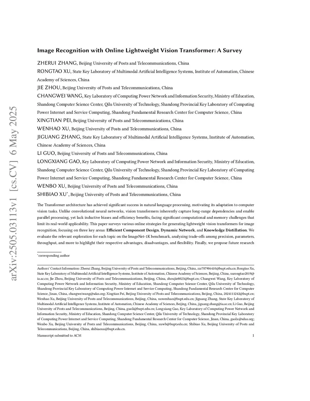 Image Recognition with Online Lightweight Vision Transformer: A Survey
