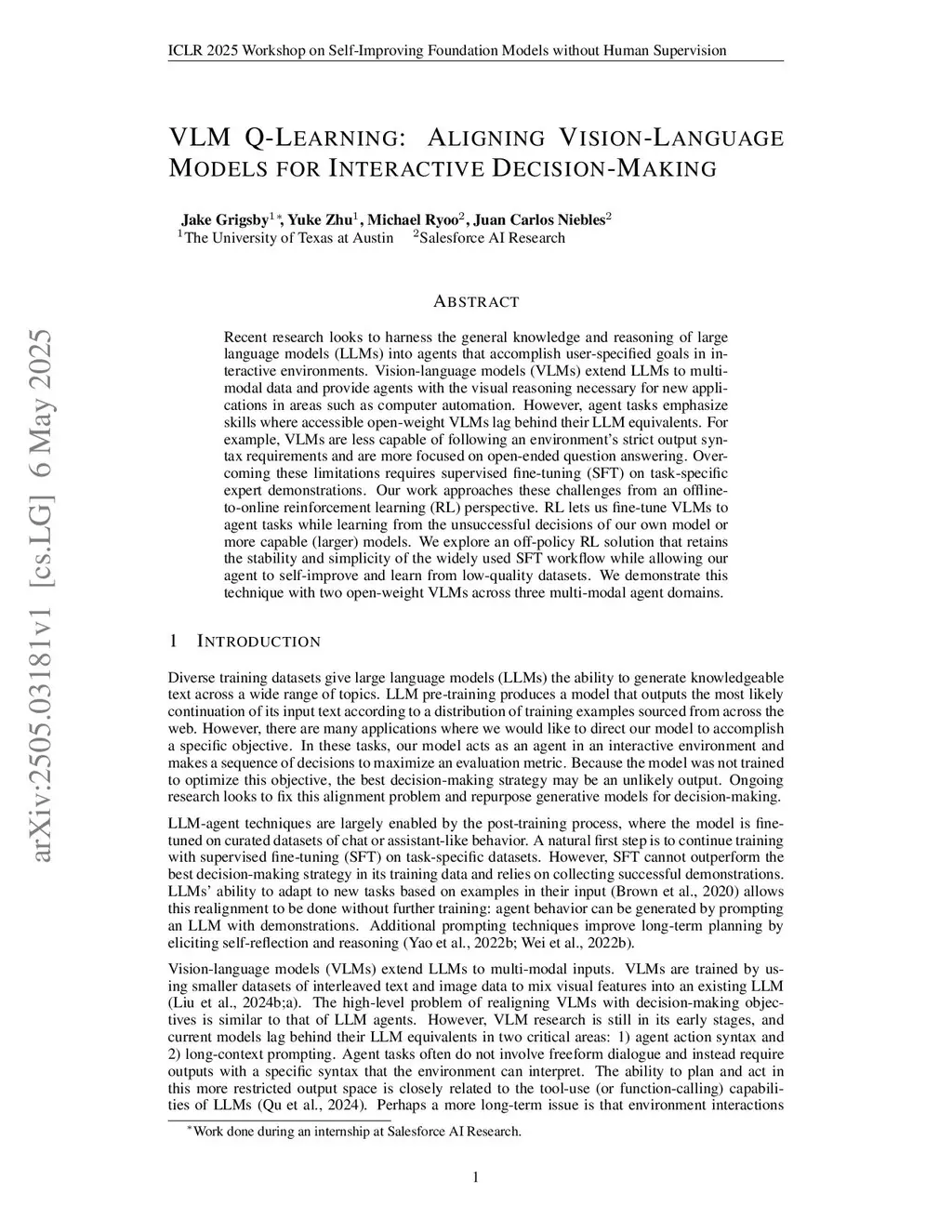 VLM Q-Learning: Aligning Vision-Language Models for Interactive Decision-Making