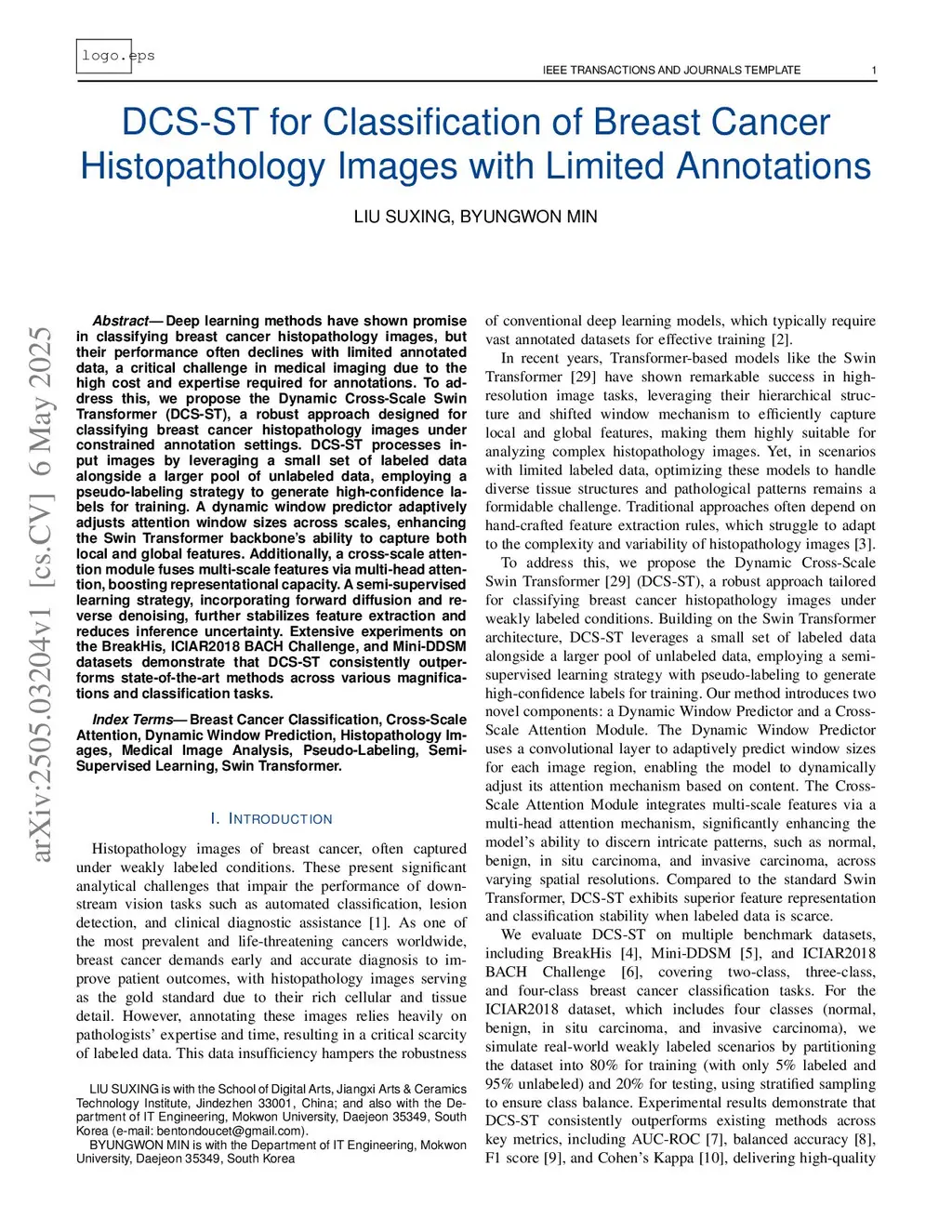 DCS-ST for Classification of Breast Cancer Histopathology Images with Limited Annotations