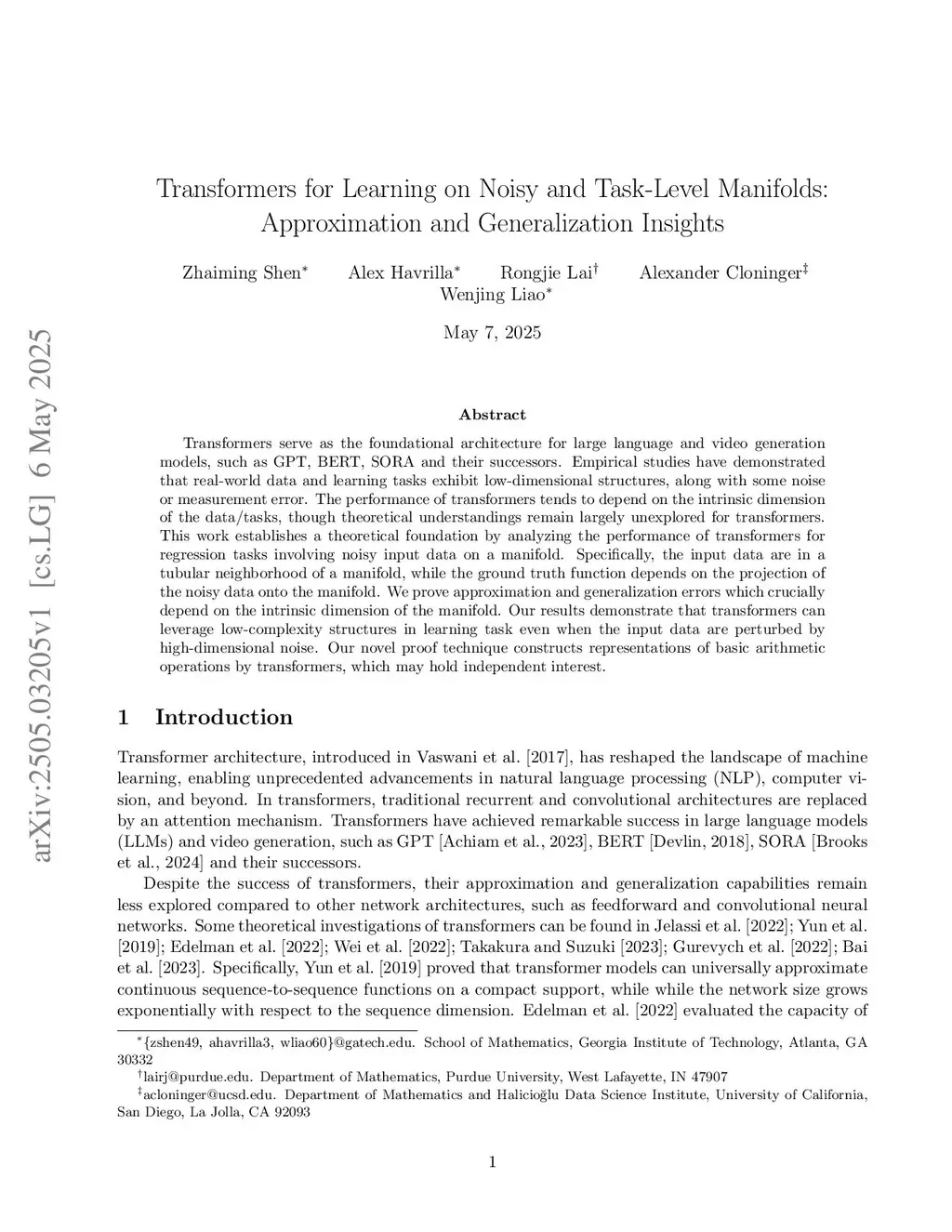 Transformers for Learning on Noisy and Task-Level Manifolds: Approximation and Generalization Insights