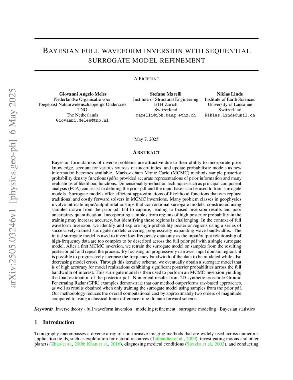 Bayesian full waveform inversion with sequential surrogate model refinement