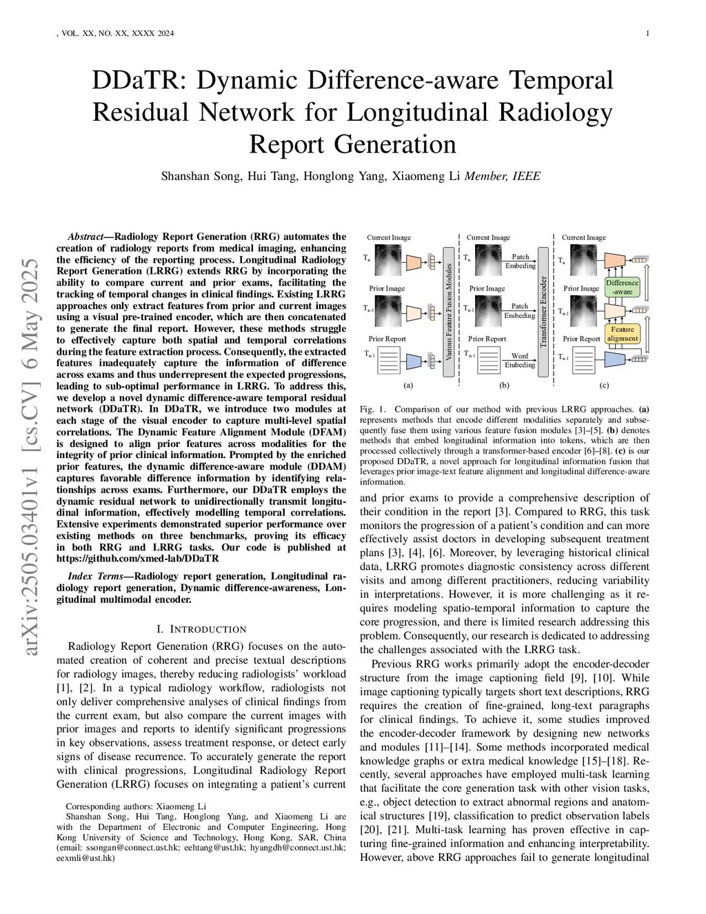 DDaTR: Dynamic Difference-aware Temporal Residual Network for Longitudinal Radiology Report Generation