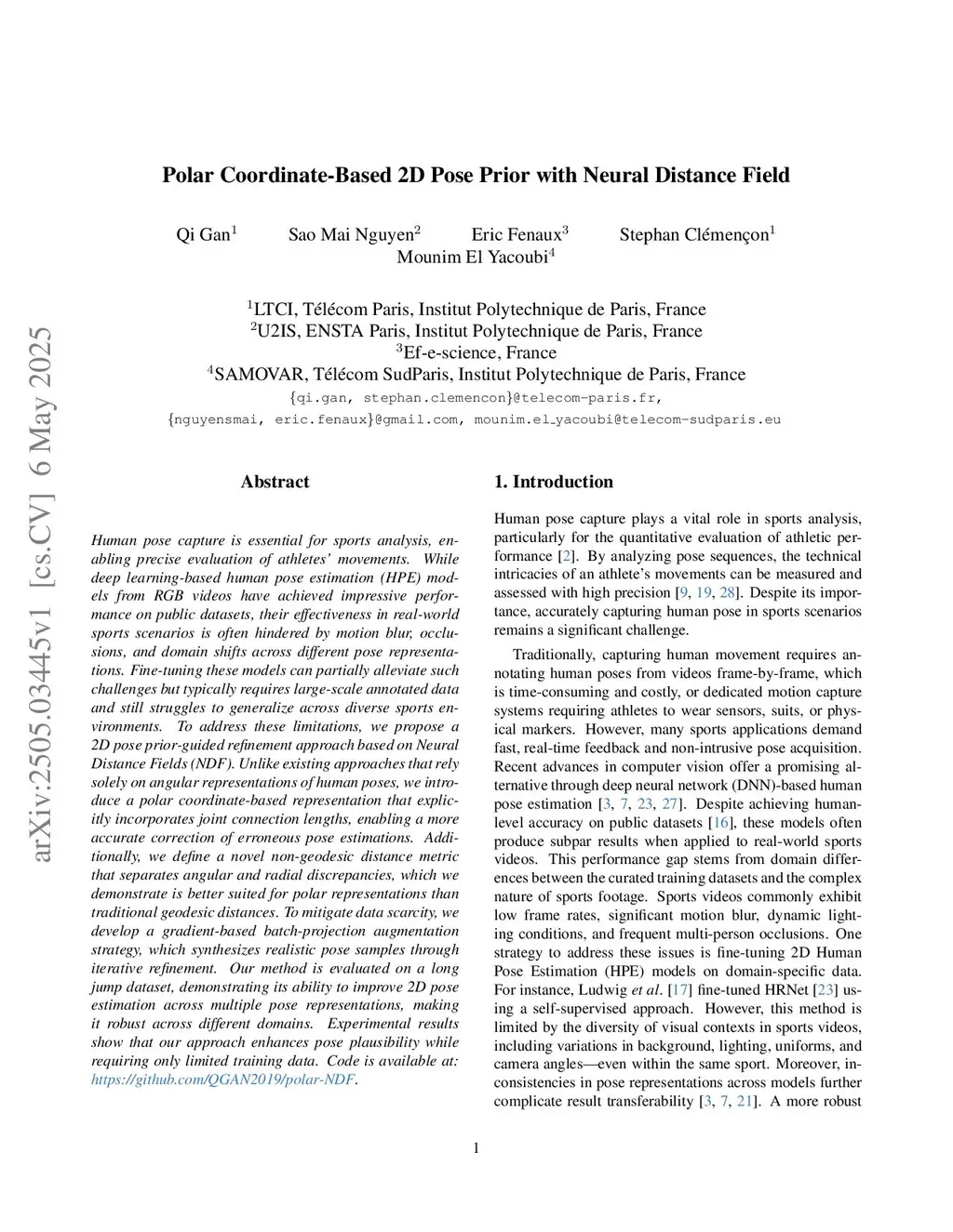 Human pose capture is essential for sports analysis, enabling precise evaluation of athletes' movements. While deep learning-based human pose estimation (HPE) models from RGB videos have achieved impressive performance on public datasets, their effectiveness in real-world sports scenarios is often hindered by motion blur, occlusions, and domain shifts across different pose representations. Fine-tuning these models can partially alleviate such challenges but typically requires large-scale annotated data and still struggles to generalize across diverse sports environments. To address these limitations, we propose a 2D pose prior-guided refinement approach based on Neural Distance Fields (NDF). Unlike existing approaches that rely solely on angular representations of human poses, we introduce a polar coordinate-based representation that explicitly incorporates joint connection lengths, enabling a more accurate correction of erroneous pose estimations. Additionally, we define a novel non-geodesic distance metric that separates angular and radial discrepancies, which we demonstrate is better suited for polar representations than traditional geodesic distances. To mitigate data scarcity, we develop a gradient-based batch-projection augmentation strategy, which synthesizes realistic pose samples through iterative refinement. Our method is evaluated on a long jump dataset, demonstrating its ability to improve 2D pose estimation across multiple pose representations, making it robust across different domains. Experimental results show that our approach enhances pose plausibility while requiring only limited training data. Code is available at:this https URL.