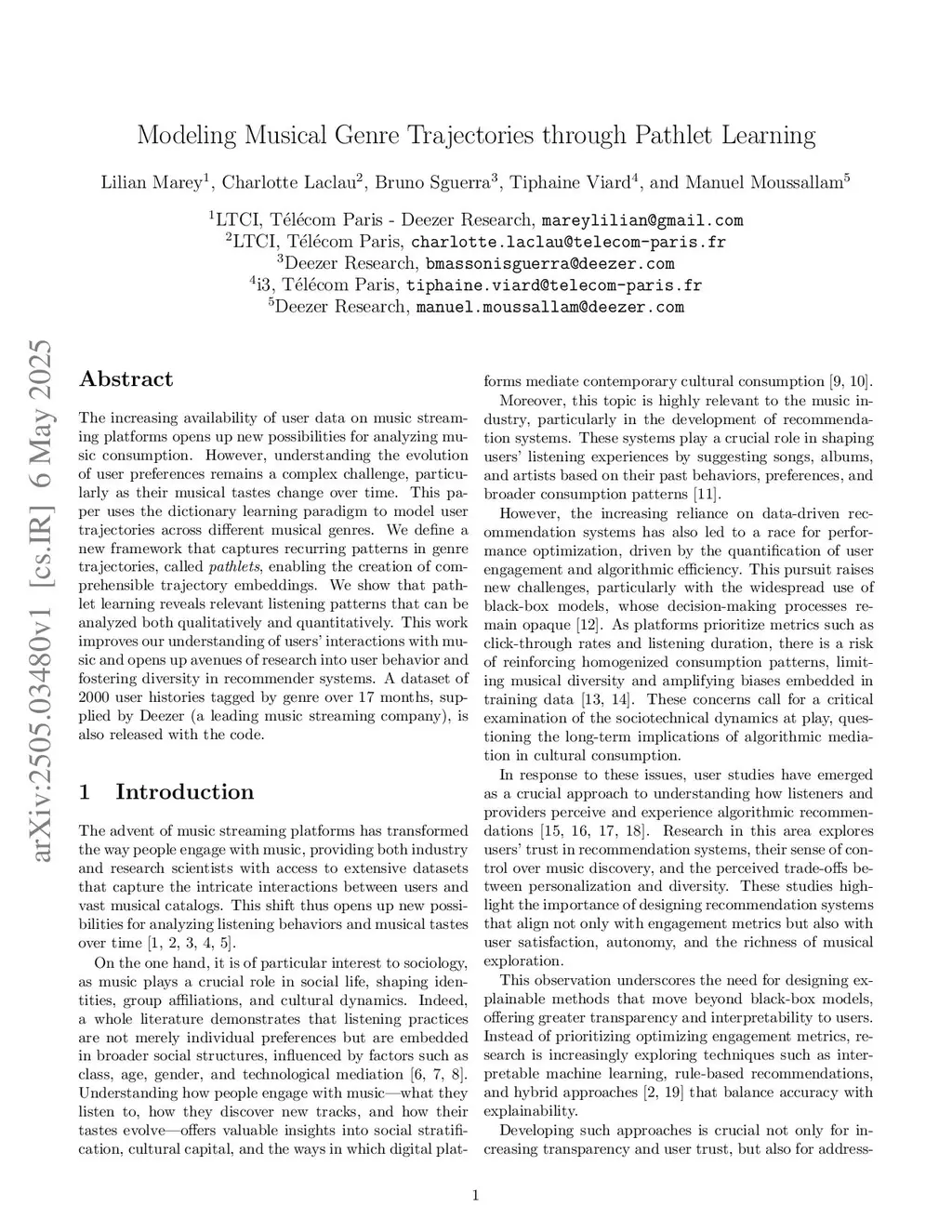 The increasing availability of user data on music streaming platforms opens up new possibilities for analyzing music consumption. However, understanding the evolution of user preferences remains a complex challenge, particularly as their musical tastes change over time. This paper uses the dictionary learning paradigm to model user trajectories across different musical genres. We define a new framework that captures recurring patterns in genre trajectories, called pathlets, enabling the creation of comprehensible trajectory embeddings. We show that pathlet learning reveals relevant listening patterns that can be analyzed both qualitatively and quantitatively. This work improves our understanding of users' interactions with music and opens up avenues of research into user behavior and fostering diversity in recommender systems. A dataset of 2000 user histories tagged by genre over 17 months, supplied by Deezer (a leading music streaming company), is also released with the code.