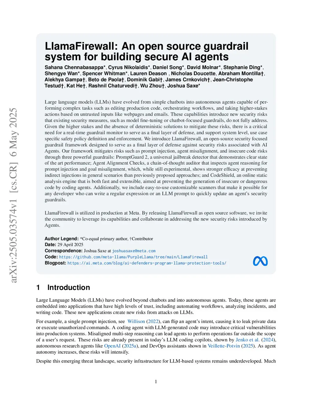 LlamaFirewall: An open source guardrail system for building secure AI agents