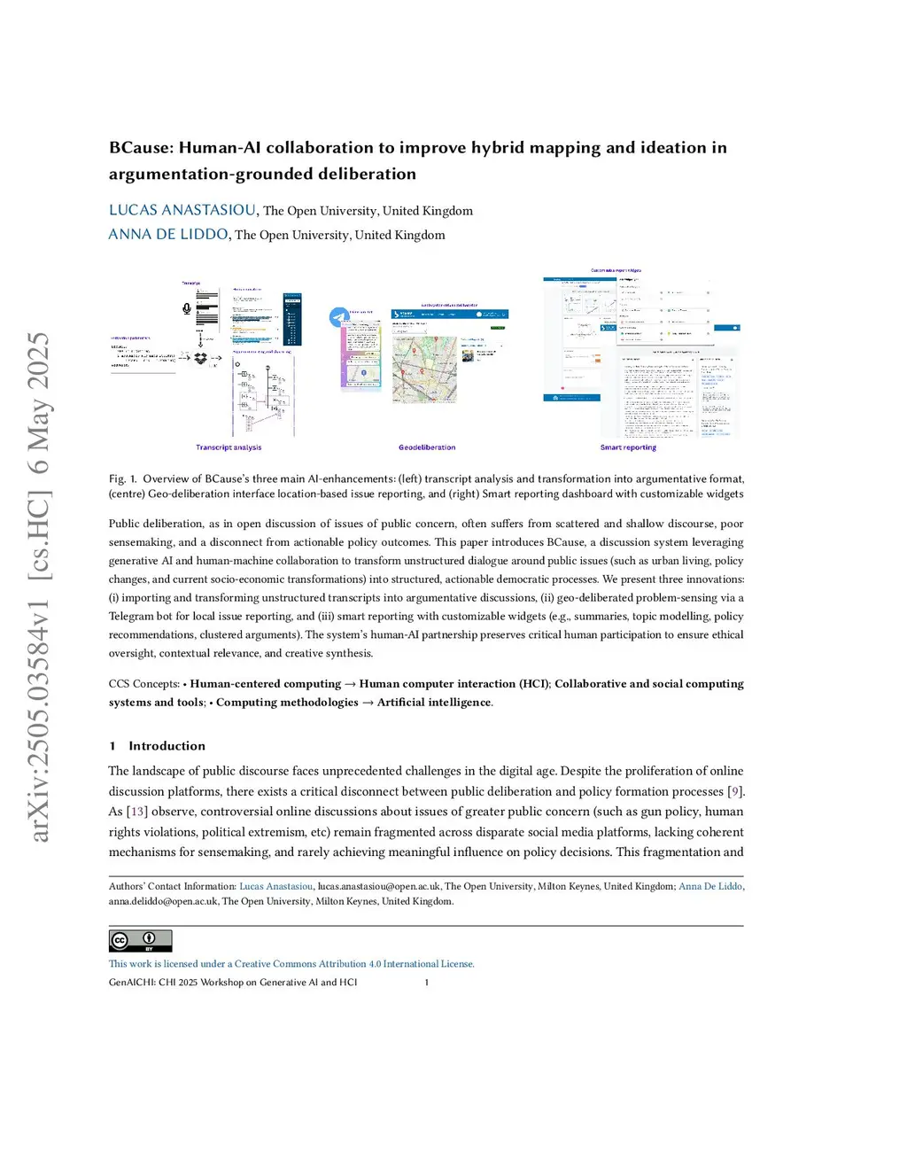 BCause: Human-AI collaboration to improve hybrid mapping and ideation in argumentation-grounded deliberation