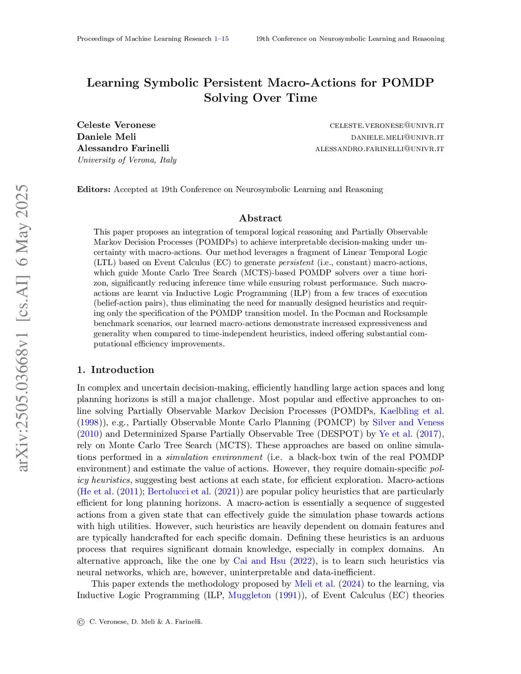 Learning Symbolic Persistent Macro-Actions for POMDP Solving Over Time