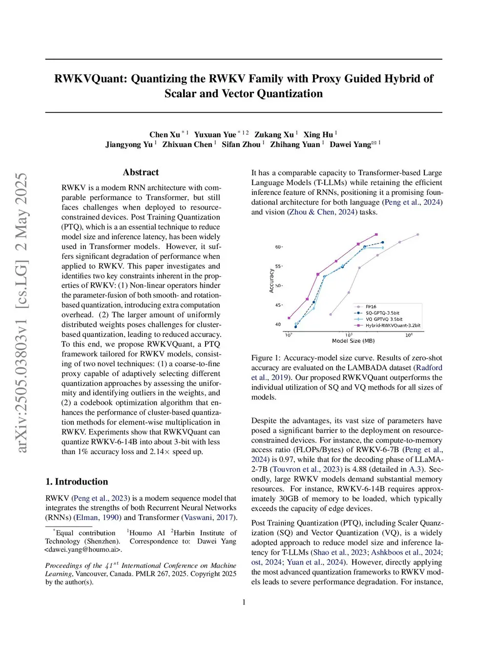 RWKVQuant: Quantizing the RWKV Family with Proxy Guided Hybrid of Scalar and Vector Quantization