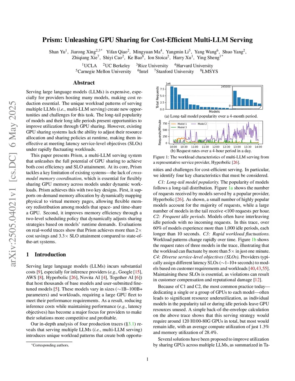 Prism: Unleashing GPU Sharing for Cost-Efficient Multi-LLM Serving