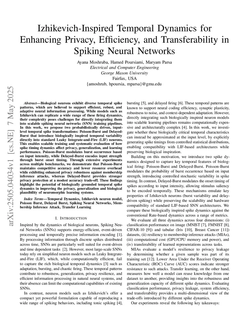 Izhikevich-Inspired Temporal Dynamics for Enhancing Privacy, Efficiency, and Transferability in Spiking Neural Networks
