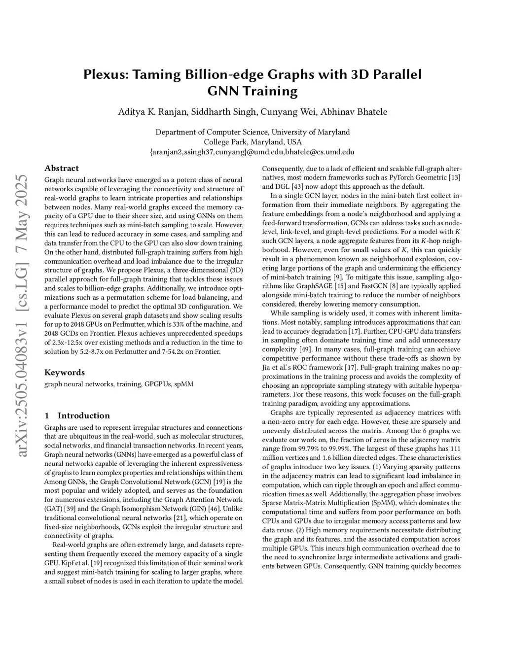 Plexus: Taming Billion-edge Graphs with 3D Parallel GNN Training