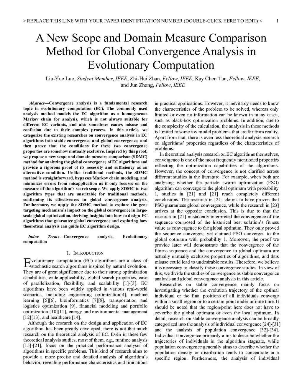 A New Scope and Domain Measure Comparison Method for Global Convergence Analysis in Evolutionary Computation