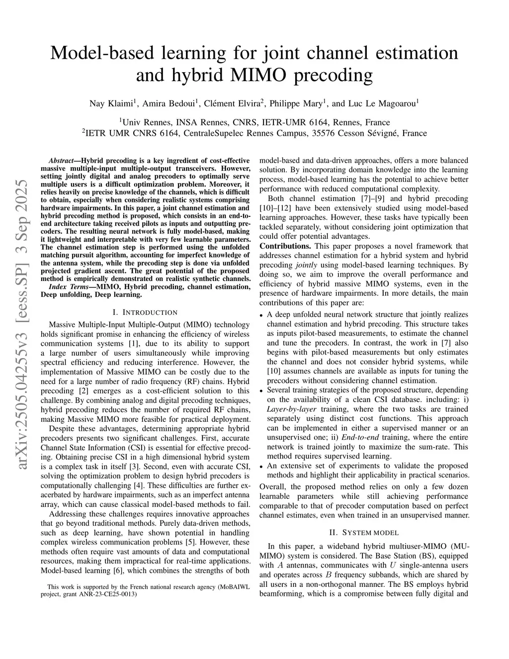 Model-based learning for joint channel estimationand hybrid MIMO precoding